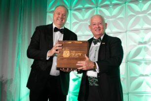Terry Brady, Chairman of The Ireland Funds Chicago Regional Advisory Committee, presented Kerry Group with The Ireland Funds Corporate Social Responsibility Award. Oliver Kelly, Group Chief Commercial Officer, accepted the award on Kerry’s behalf and spoke of the deep pride Kerry had in its humble beginnings 50 years on a diary farm in Tralee, County Kerry to its global growth and focus on innovation and a commitment to excellence.
