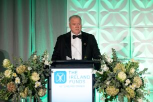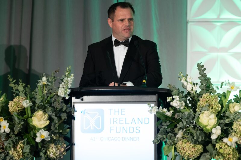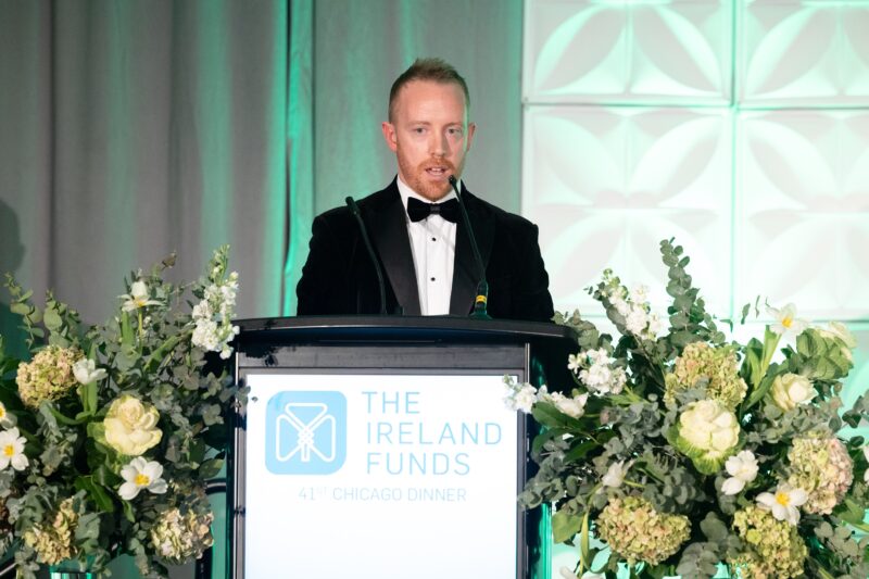 Michael Smyth, CEO of COPE Galway, spoke about the work his organization undertakes across County Galway with the support of The Ireland Funds. COPE helps 3,000 people annually through challenging and vulnerable times involving homelessness, elderly support and domestic violence.