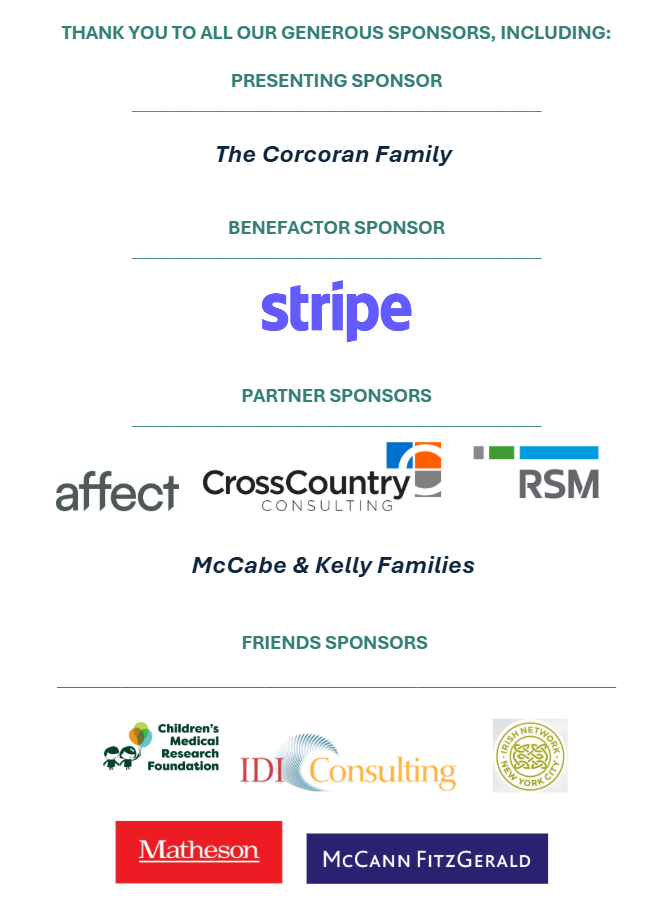 The Ireland Funds is pleased to accept corporate matching gifts. The Ireland Funds is a 501(c) (3) nonprofit organization. Contributions, less projected benefit value, are tax-deductible as provided by the law. Please note that event tickets cannot be purchased through donor-advised funds under IRS guidelines. For further guidance, please consult with your donor-advised fund administrator, tax advisor, or a member of The Ireland Funds team. Thank you.