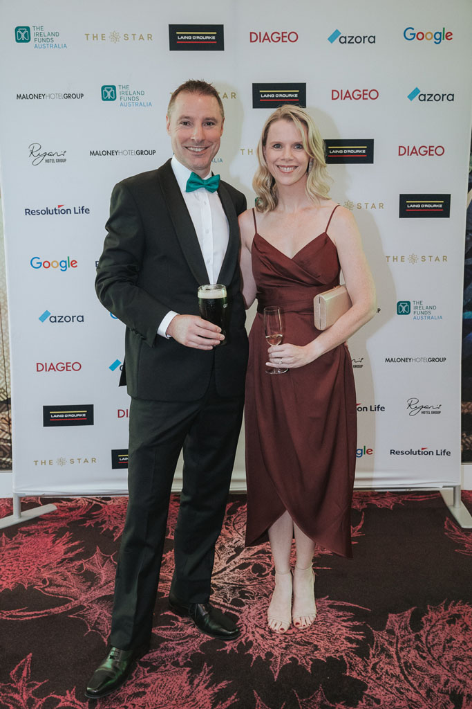 We were next officially welcomed by our chair Yvonne Le Bas with special mentioned to Minister Hildegarde Naughton, Minister of State, Department of Education, Ambassador Tim Mawe and Consul General Rosie Keane. Our Board Members including Frank Curran, Dr Tom Moore, Patrick Tuttle, and David Woodward. The Star Entertainment Group, Chairman John O’Neill AO, ( Also former Chairman of the Ireland Funds Australia ) MD and CEO Matt Bekier and George Hughes Chief Marketing Officer, Coolmore Stud, Charles Curran AC, Alloggio, Glen Dimplex and all our Table Captains that took Platinum, Gold, and Silver tables.