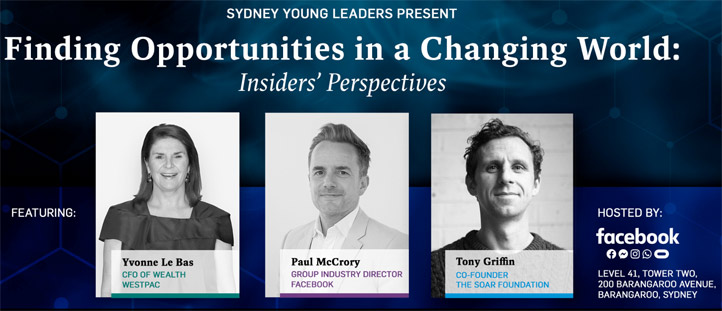 On Friday 16 August, an inspiring morning brought three worlds together. The Sydney Young Leaders hosted a corporate breakfast on the topic of ‘Finding Opportunities in a Changing World’. In the shining new office of Facebook’s Sydney HQ in Barangaroo positioned with backdrop of the Sydney Harbour.