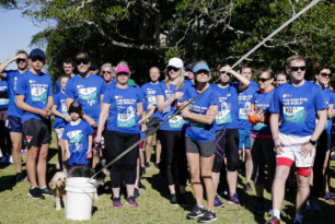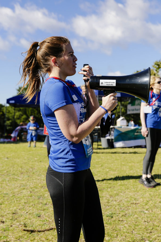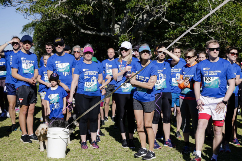 Members of the Ireland Funds Australia Young Leaders, friends, family and supporters of the Ireland Funds participated in a warm-up led by Young Leader Committee member Niamh Cunningham before racing off under the Multisport arch.