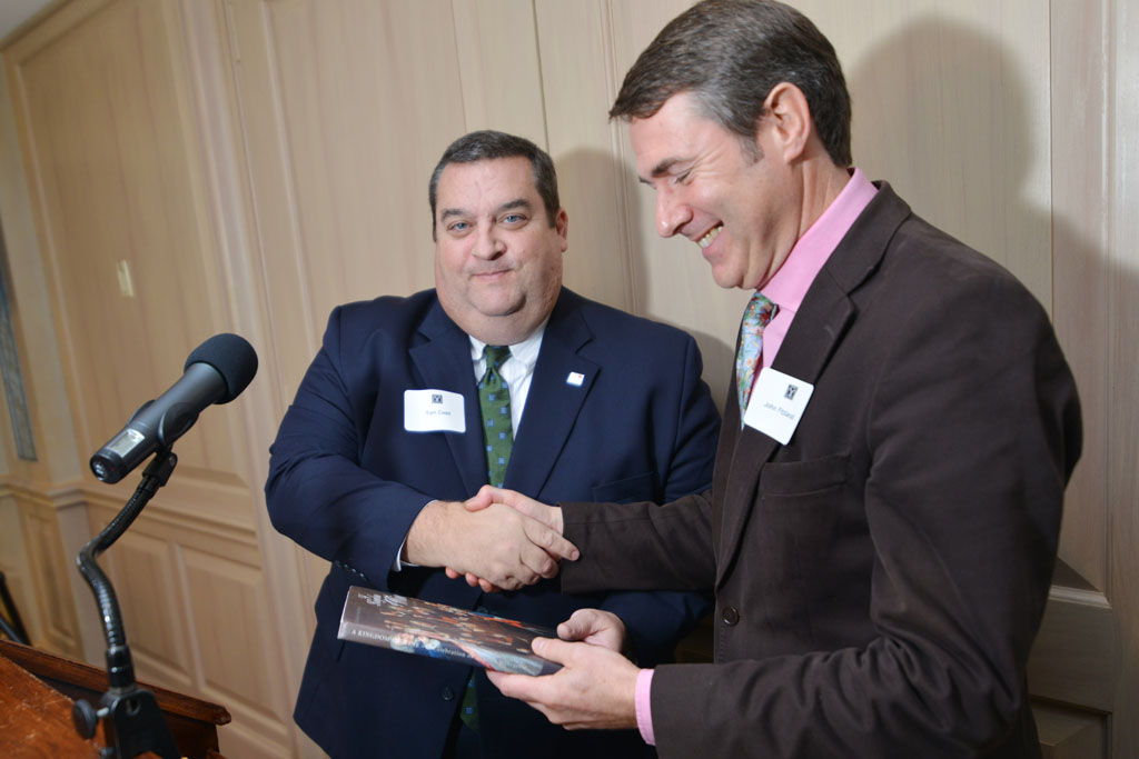 October 22, 2013 AIF National Board Director and Regional Advisory Board Chairman, Tom Codd hosted a Leadership Forum event at the Dallas Petroleum Club featuring John FitzGerald of University College Cork for a discussion of The Atlas of the Great Irish Famine, of which Mr. FitzGerald is the Commissioning Editor. Those in attendance, including AIF Board Director Don Hanratty, were fascinated by Mr. FitzGerald’s presentation which focused on a new understanding of the causes and long term effects of the Great Famine and debunking many myths and misunderstandings related to the these matters.
