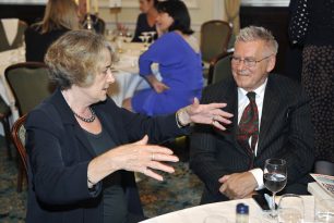 After the guests enjoyed their lunch, Laura Canavan Hayes invited Ros and Susan to join her in the front of the room for what turned out to be an entertaining, and engaging panel discussion. Ros and Susan talked about the challenges and successes they have had to date in their careers. Although Ros and Susan, have had very different careers, their advice and observations rang relevant with many of the ladies in the room. The atmosphere was electric with the only sense of disappointment came from the announcement that we could only take one more question.