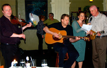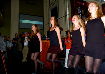 The Plough and the Stars restaurant hosted the event and 40 people enjoyed being a part of the story. Music, dancing, the wait staff in period costumes, dramatic readings, vocal solos and a backdrop of scenes from John Huston’s 1940 film version provided the festive atmosphere.