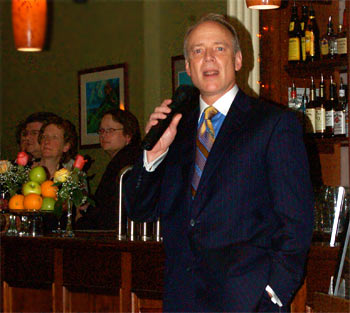 Sponsorship from Diageo provided for Guinness, Smithwick’s and Bushmills. Special thanks to Pat Laphen, Frank Lamont and Greg Gillespie for serving as the heads of table and showing their skills at carving the roast goose. Austin McGrath, one of The Plough’s owners, provided a wonderful delivery of Gabriel’s speech and Philadelphia actor Greg Wood’s final song “It’s snowing on the Living and the Dead” supplied the musical entertainment for a rare June snow storm in keeping with the tale.