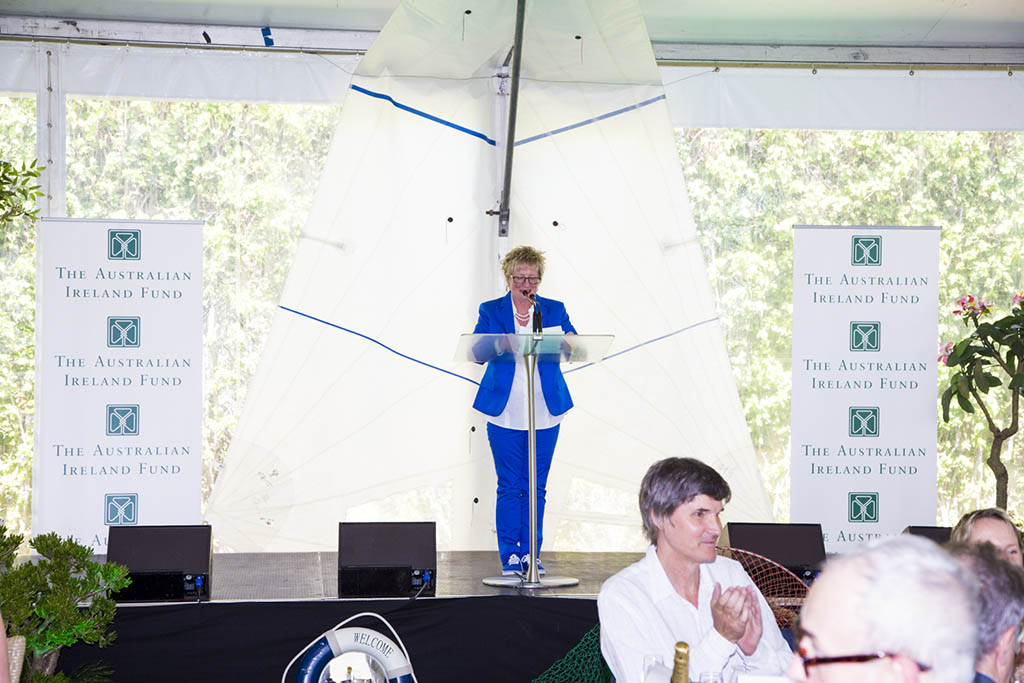 After guests had enjoyed beautiful cuisine prepared by Gastronomy, Chairman John O’Neill AO took to the stage with His Excellency Noel White, Ambassador of Ireland to Australia. John addressed the large crowd with gratitude telling supporters how important they are in providing much-needed help to our flagship projects. John also paid tribute to Gough Whitlam who recently passed away and also remembered Margaret Whitlam who wasone of the original members of the Board of The Australian Ireland Fund. The Chairman went on to officially thank Lady Mary Fairfax AC, OBE for her hospitality and all her continuing generosity in allowing us to host our flagship event at Fairwater.