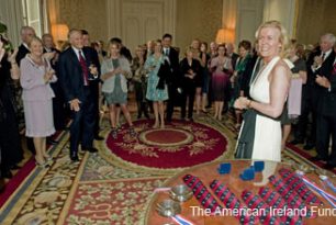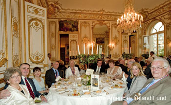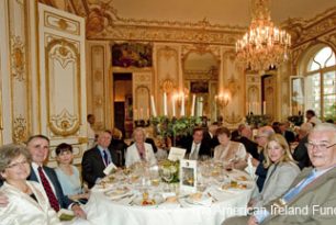 Wines were enjoyed from the vineyards of Lynch Bages, Phélan Ségur, La Ligne, and Domaine des Anges and last but not by any means least the California great DuMOL represented by owner Kerry Murphy. All of the owners spoke of their wine and their Irish connections. Kingsley Aikins, the CEO of The Worldwide Ireland Funds, in faultless French, thanked the Ambassador for her hospitality and the vintners for their generous donations of the best of their cellars. Truly, June 12th in the City of Light will go down in the annals of the Society as a “night to remember”.