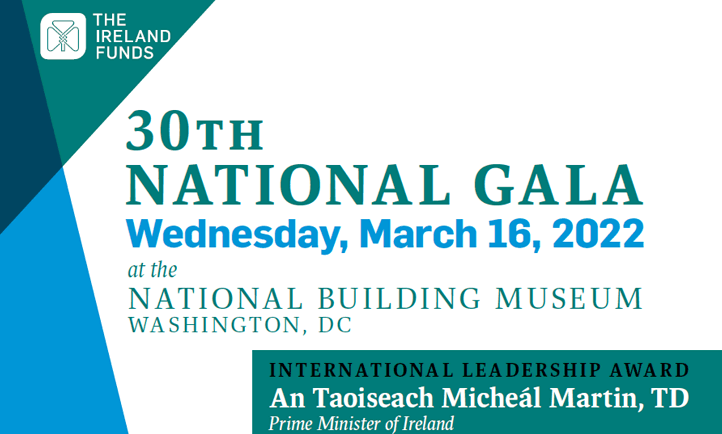 For 30 years, the annual event has celebrated and recognized the political, cultural, business, and philanthropic achievements of the Irish diaspora and generates support for the work of The Ireland Funds across the island of Ireland. The Ireland Funds is one of the largest private grant makers to the nonprofit sector in Ireland and was established in 1976 for friends of Ireland around the globe to constructively express their goodwill through private philanthropy benefitting the island of Ireland.